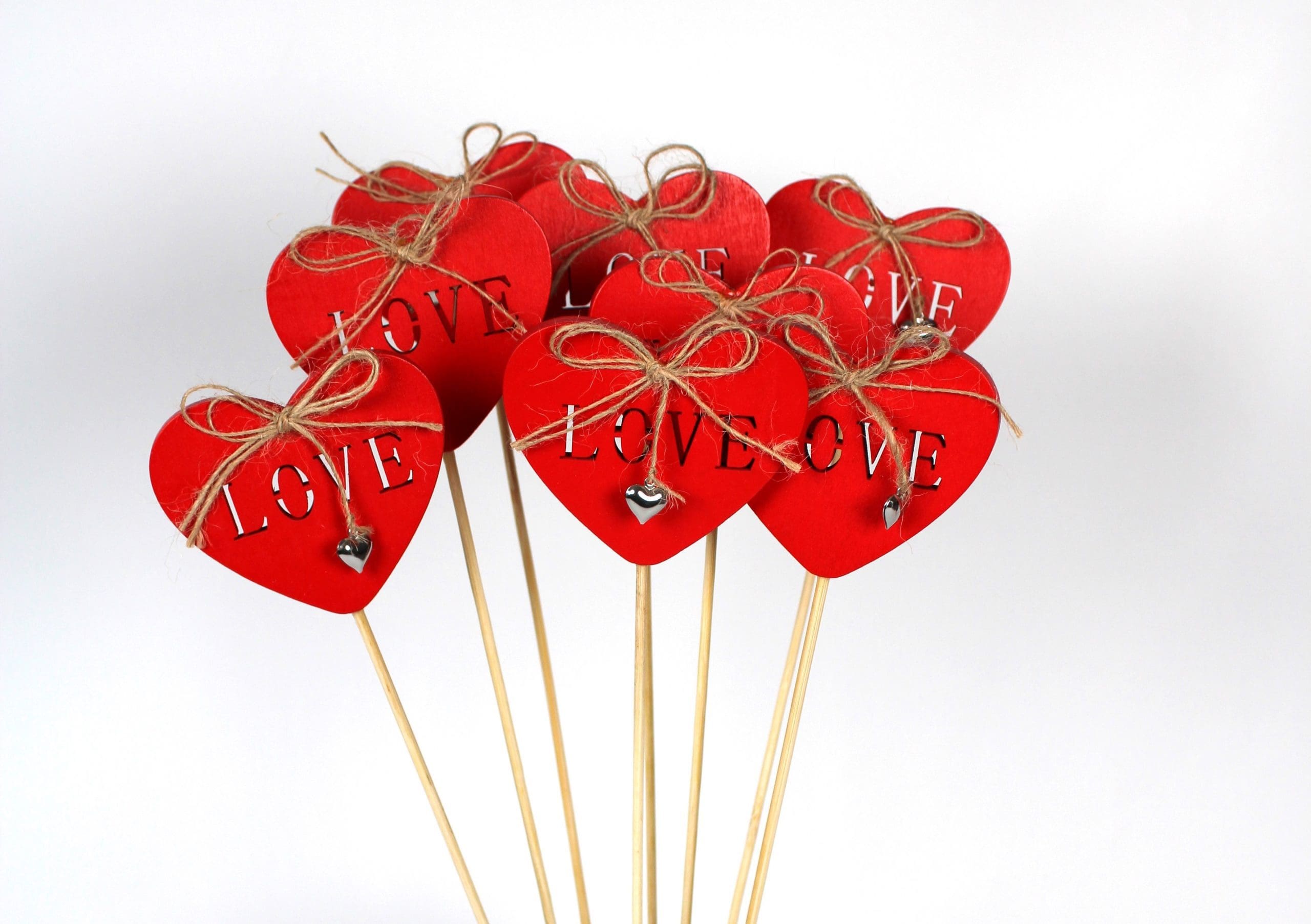 / “Love” Red Heart Shape Wooden Pick Sign
