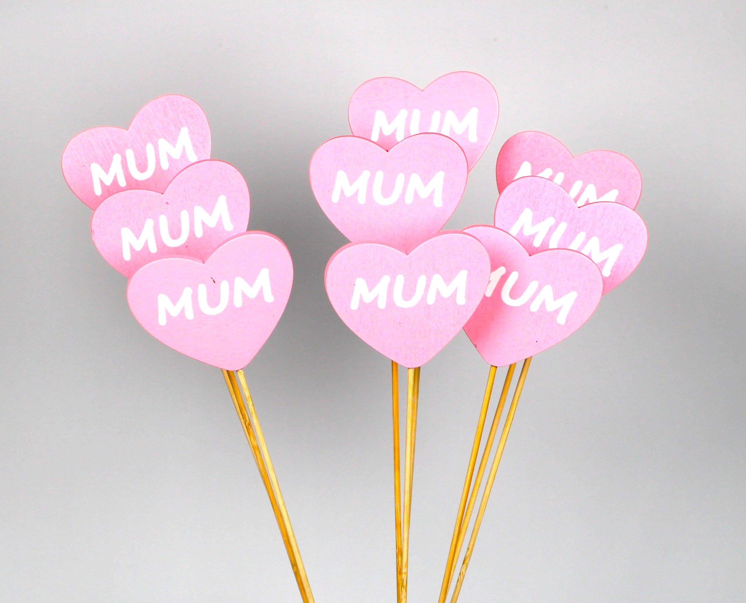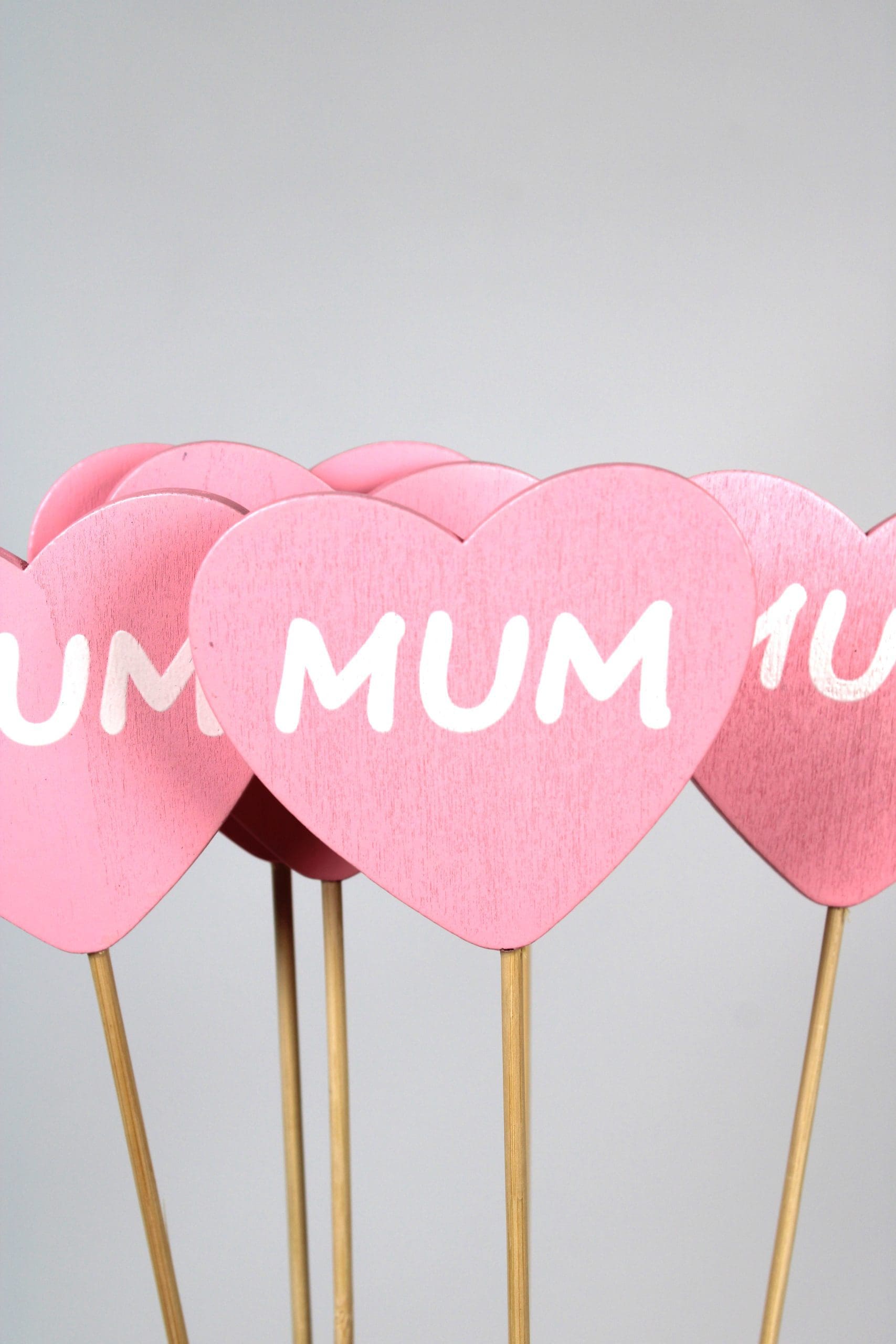 / “Mum” Pink Heart Shape Wooden Pick Sign
